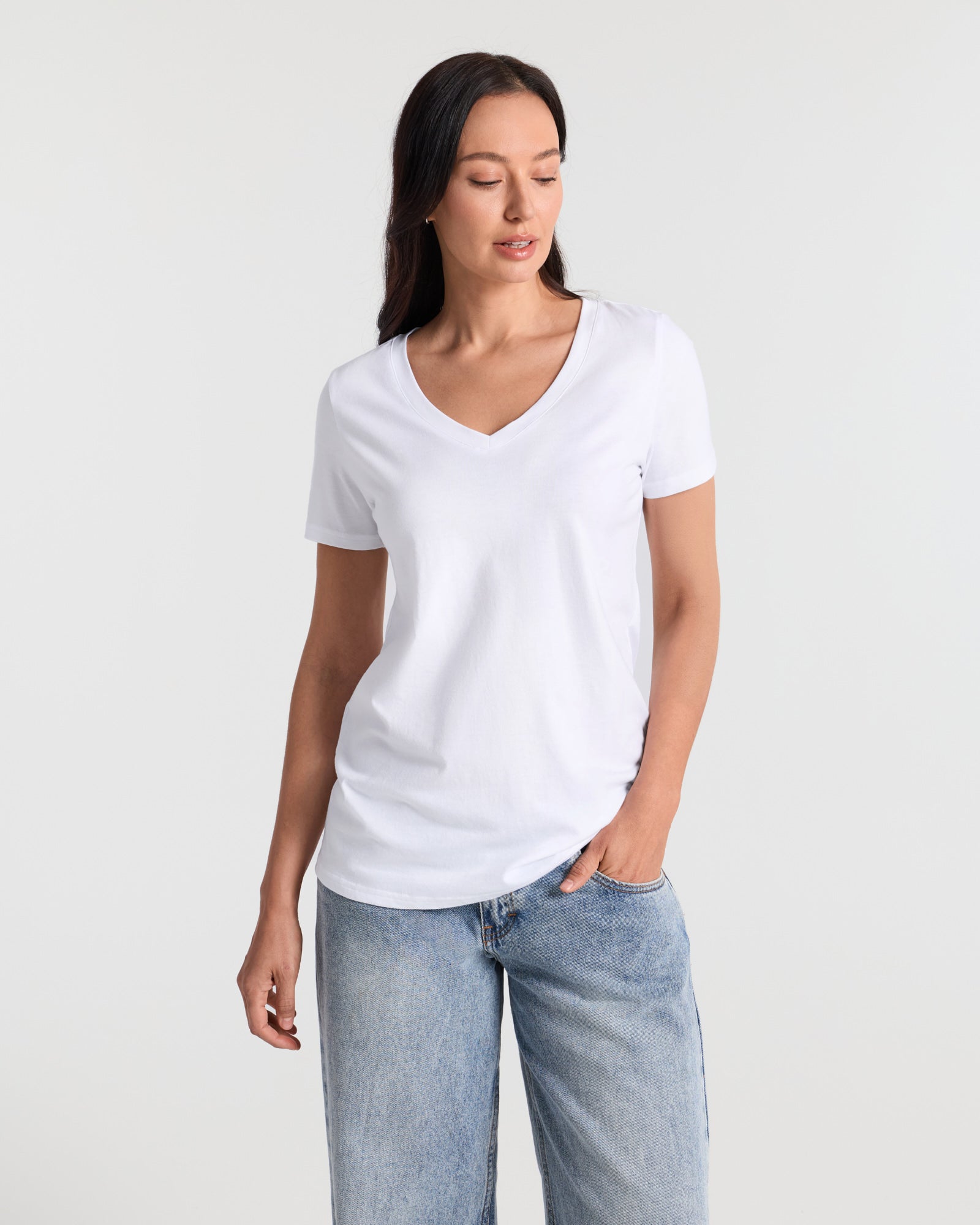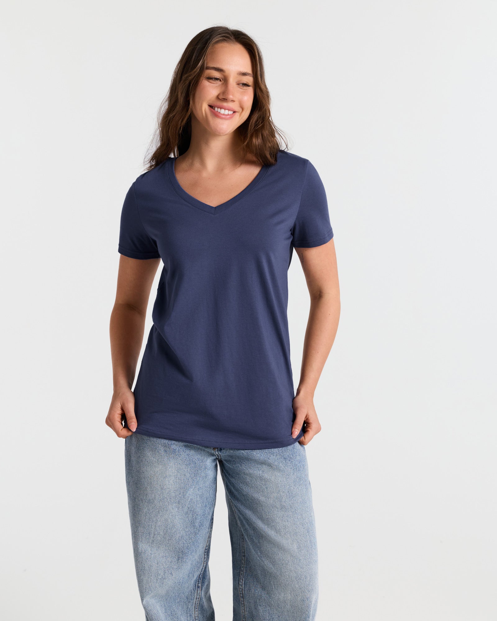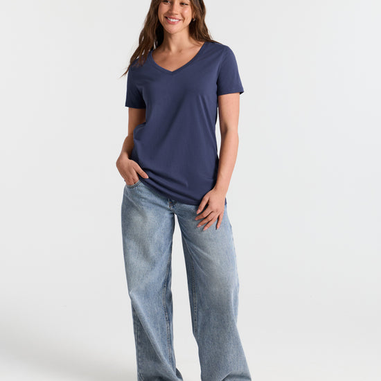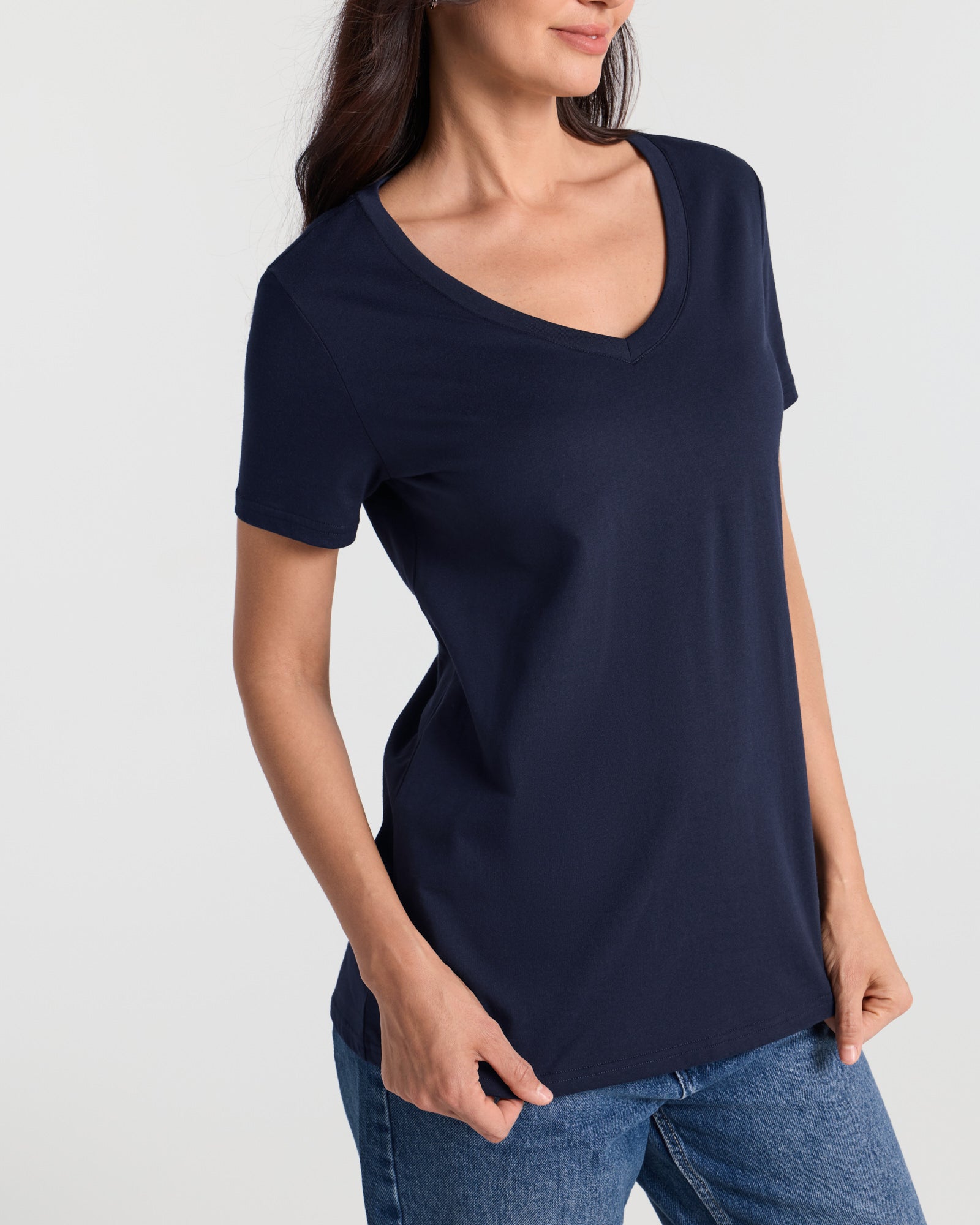 V Neck Hip Length Classic T-Shirt