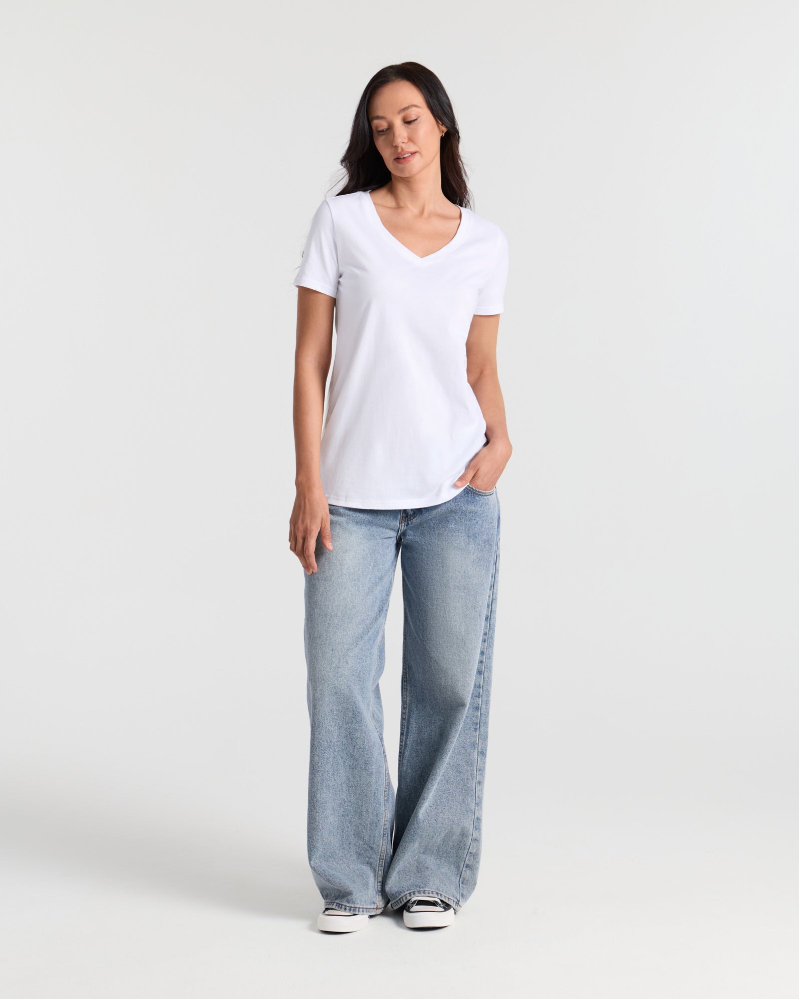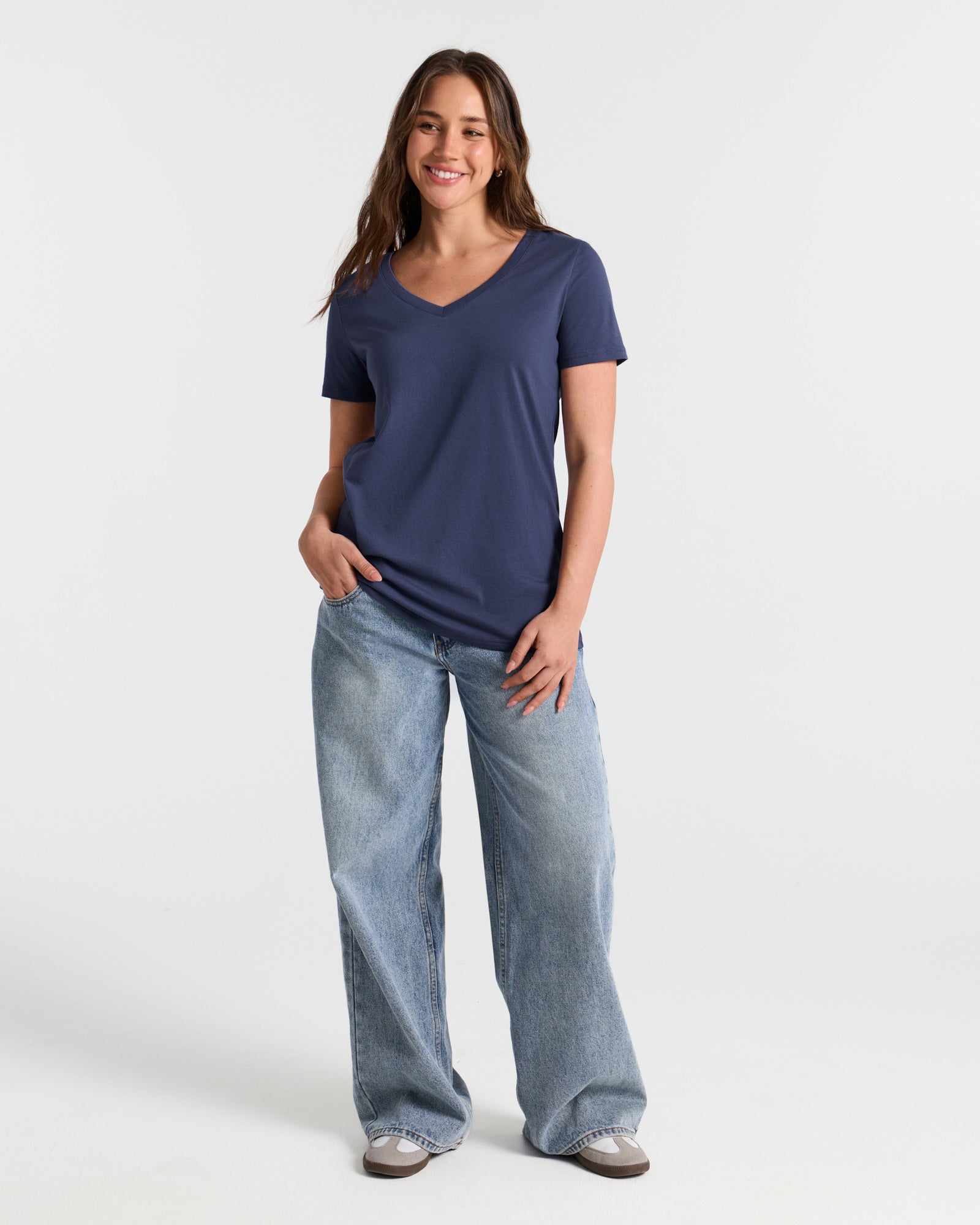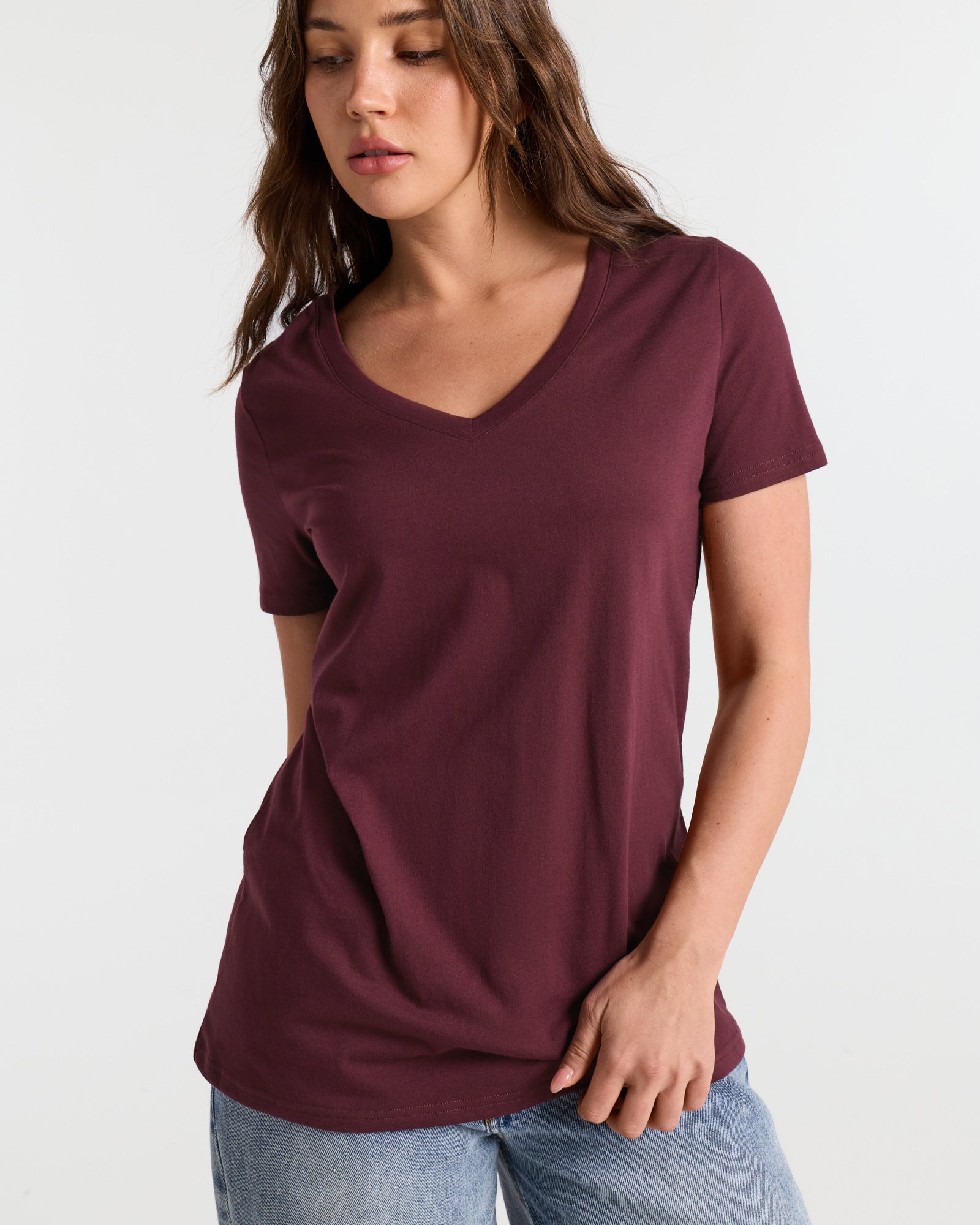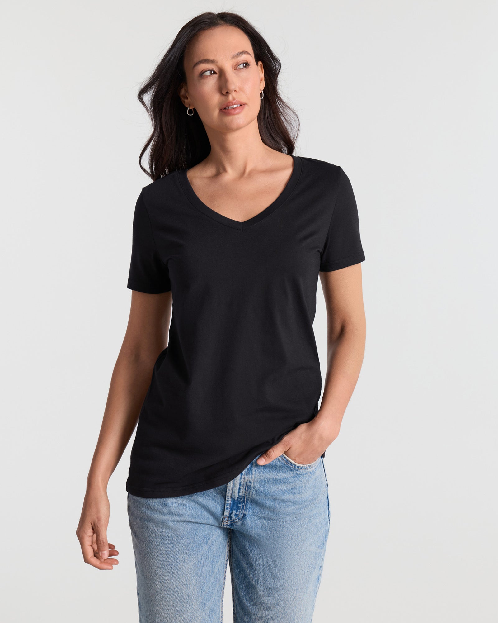 V Neck Hip Length Classic T-Shirt