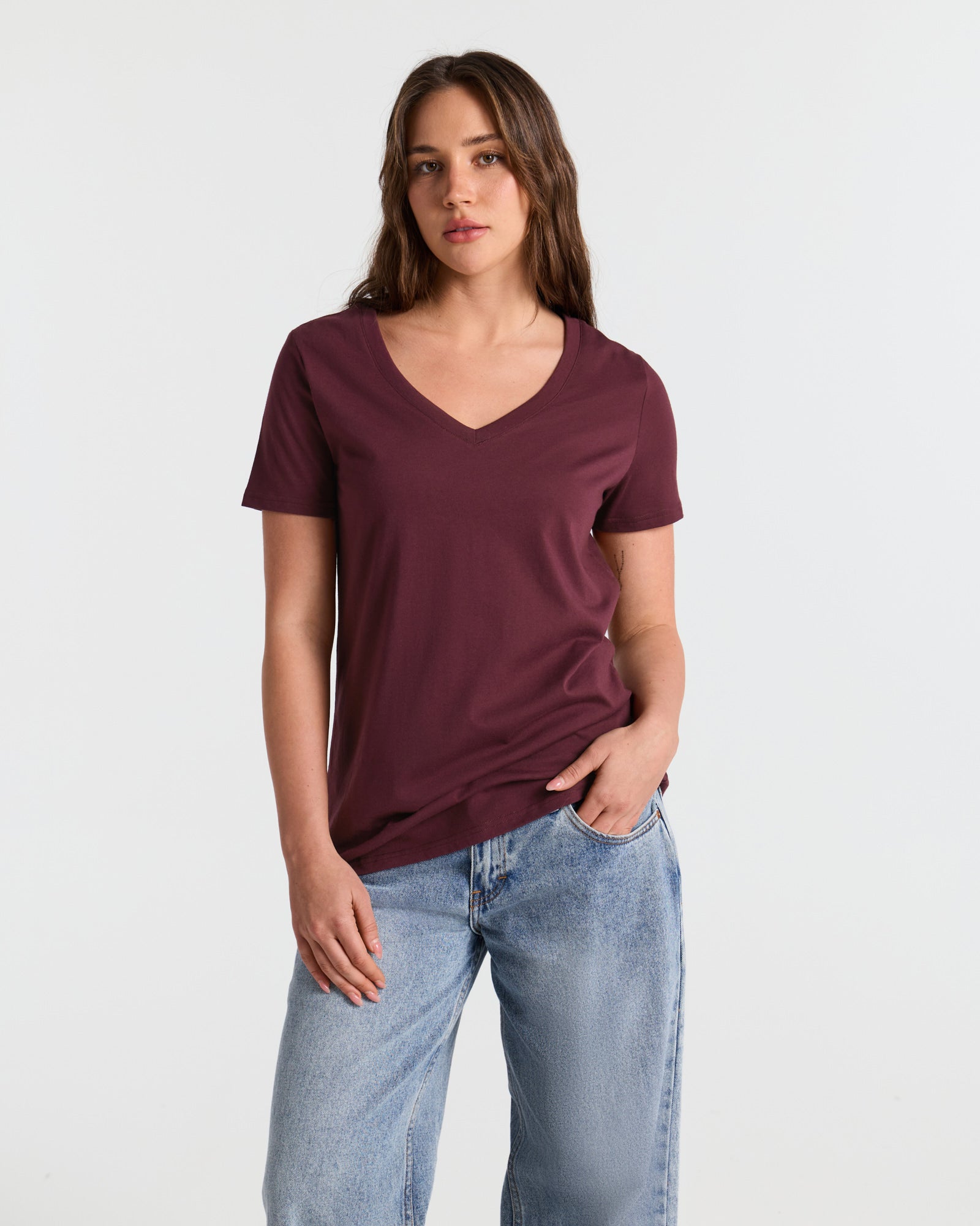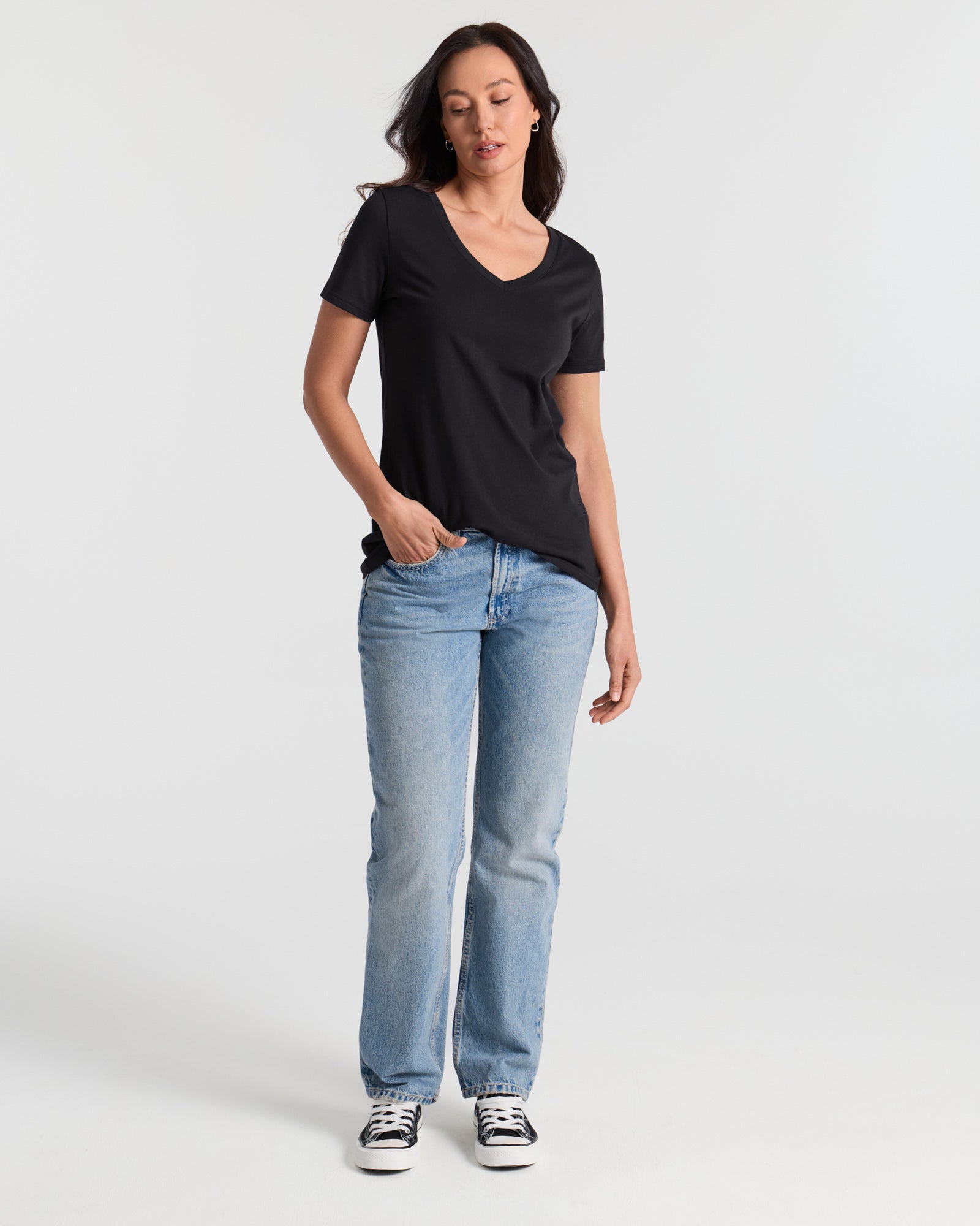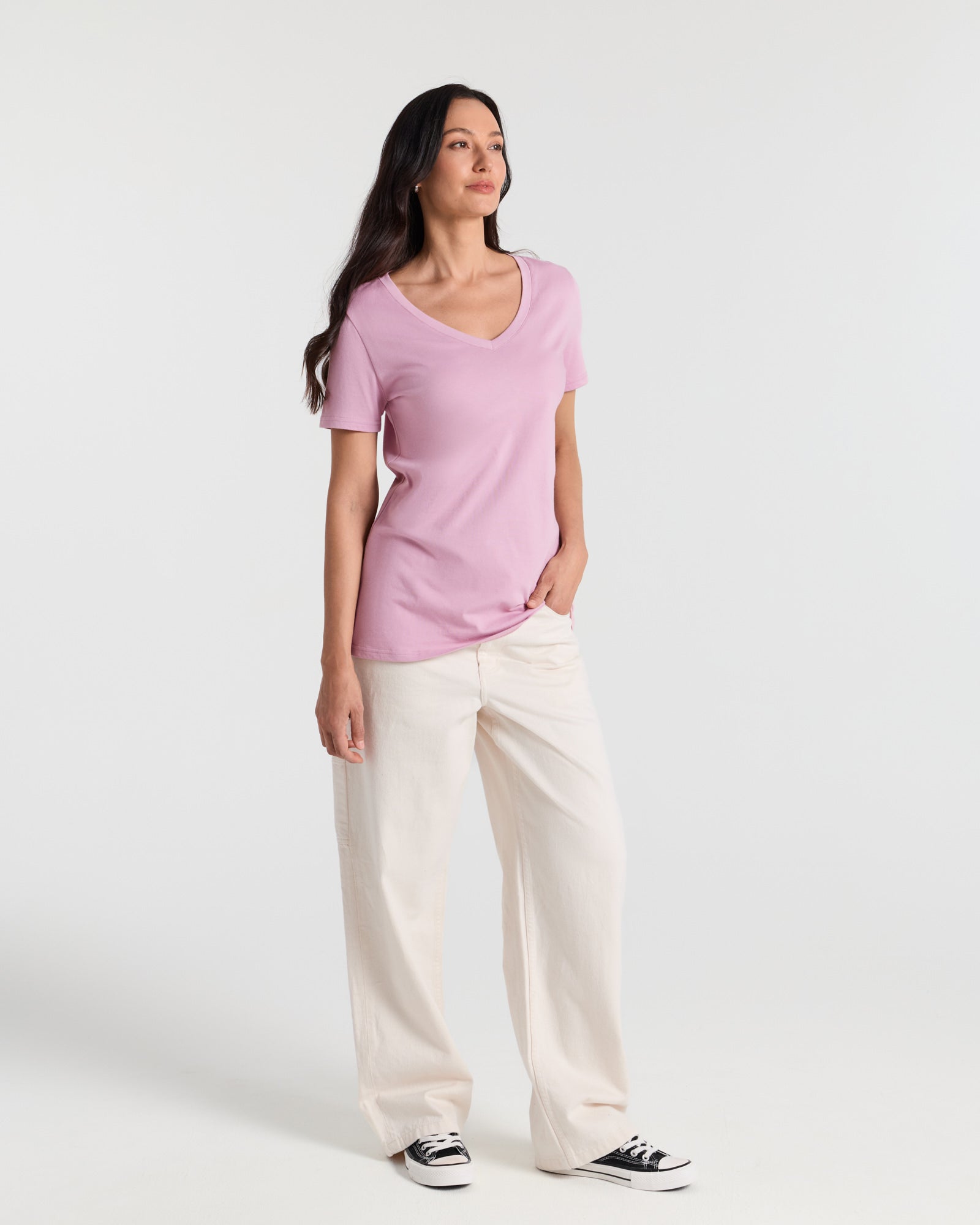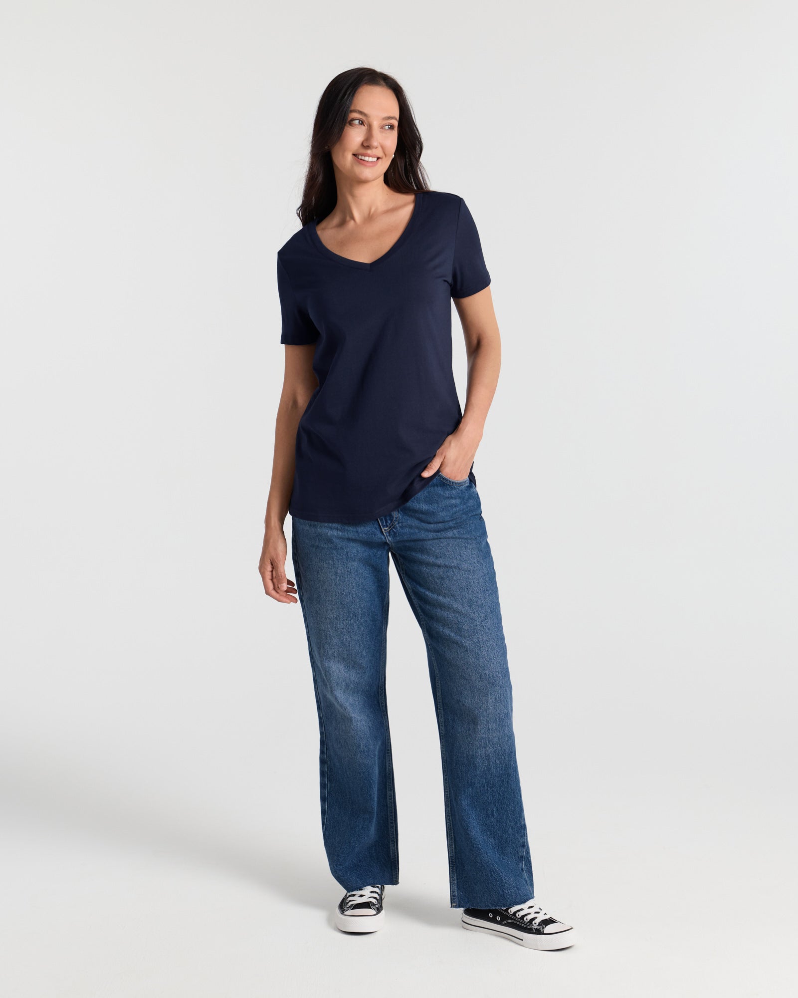 V Neck Hip Length Classic T-Shirt